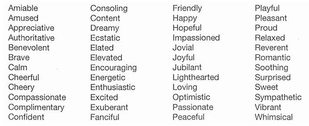 Now let’s throw in some different aspects of tone, like pace, inflection, pauses, repetition, energy, cadence, and articulation. Our tone alone can evoke all kinds of emotions. Some can be positive…